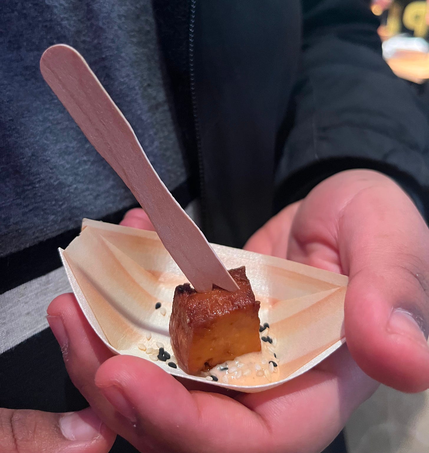 Yipin has pretty good tofu. Their sample felt a bit less prepared, but the flavor was still good. Presentation wasn’t amazing, but looks are overrated anyway.