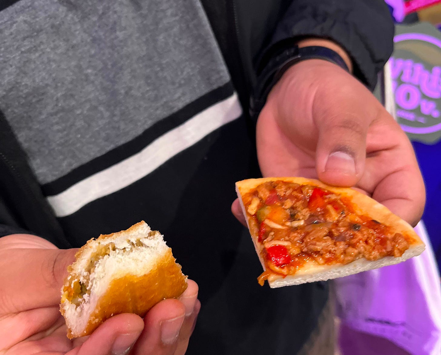 The sauce was the best part, packed with flavor, though if you’re not a fan of sweet pizza sauce, it might not be for you. They were selling pizza slices for 5 euros each, but I should mention that the slices were a bit smaller than normal, likely because the pizzas were made in a smaller oven.