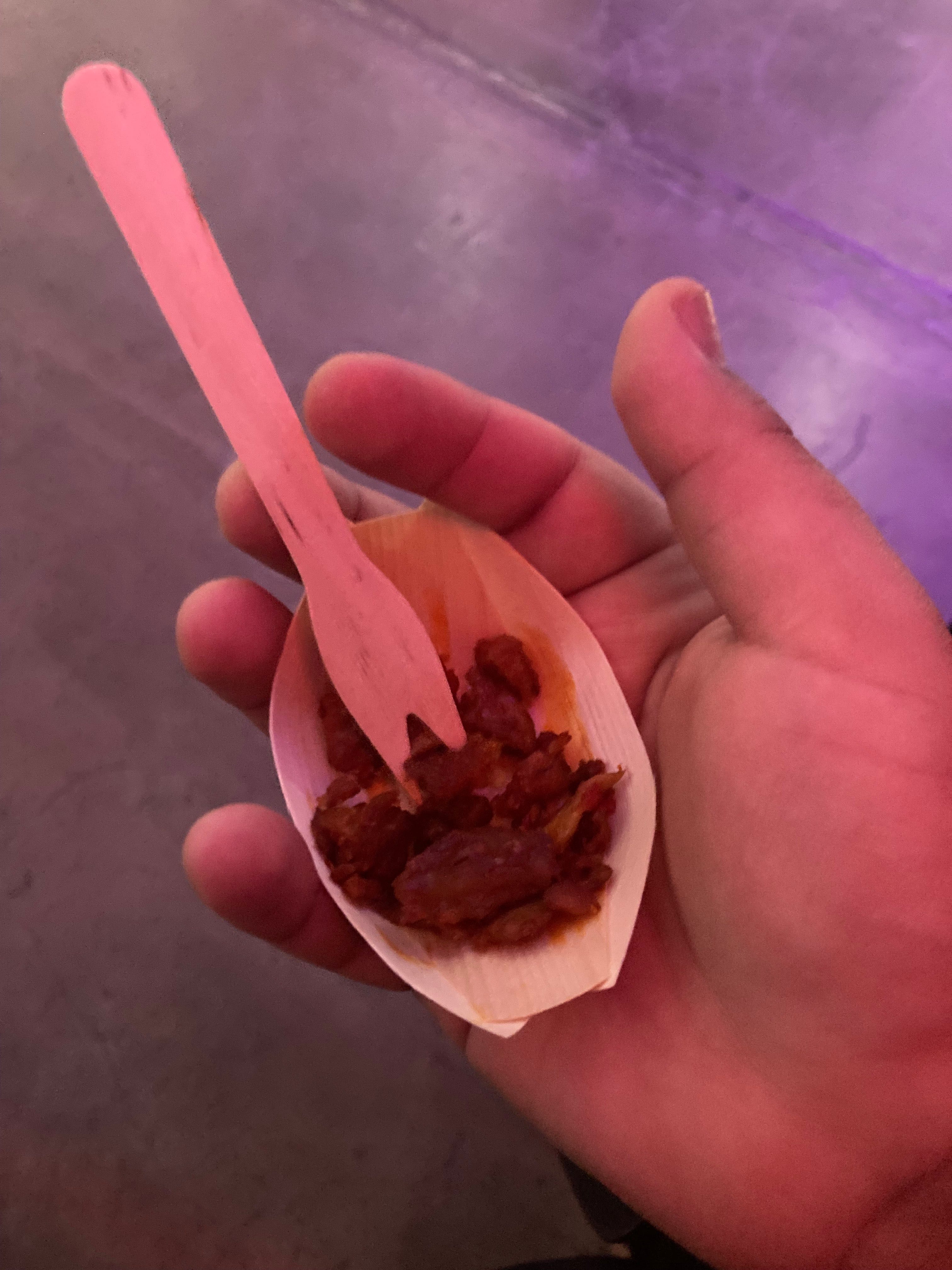 The sample was solid, something I think I’ve had before. It tasted like soy or seitan, which isn’t a bad thing at all. It felt like a protein you’d typically find in a wok dish.