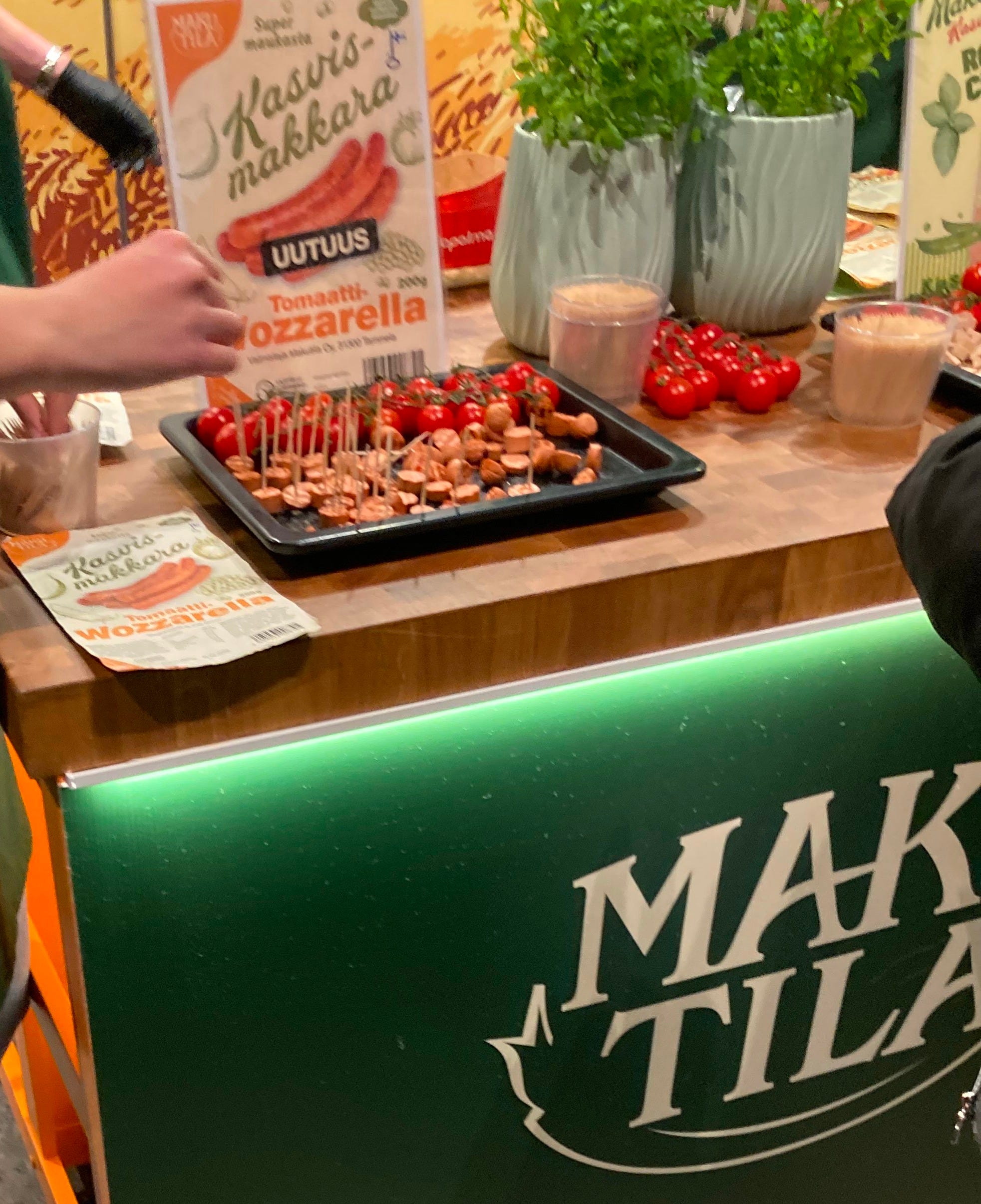 At Vegemessut, they showcased a new Kasvis-Makkara Tomaatti Mozzarella, along with their roasted chicken–flavored vegan slices.
