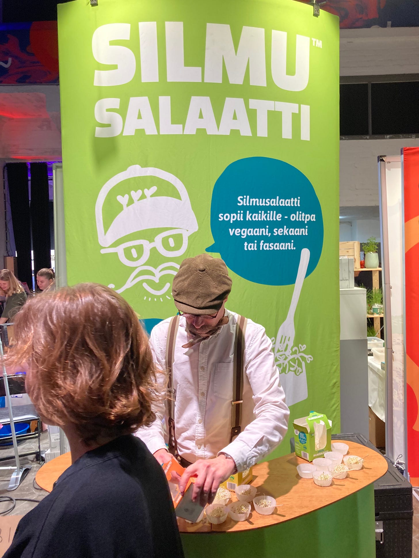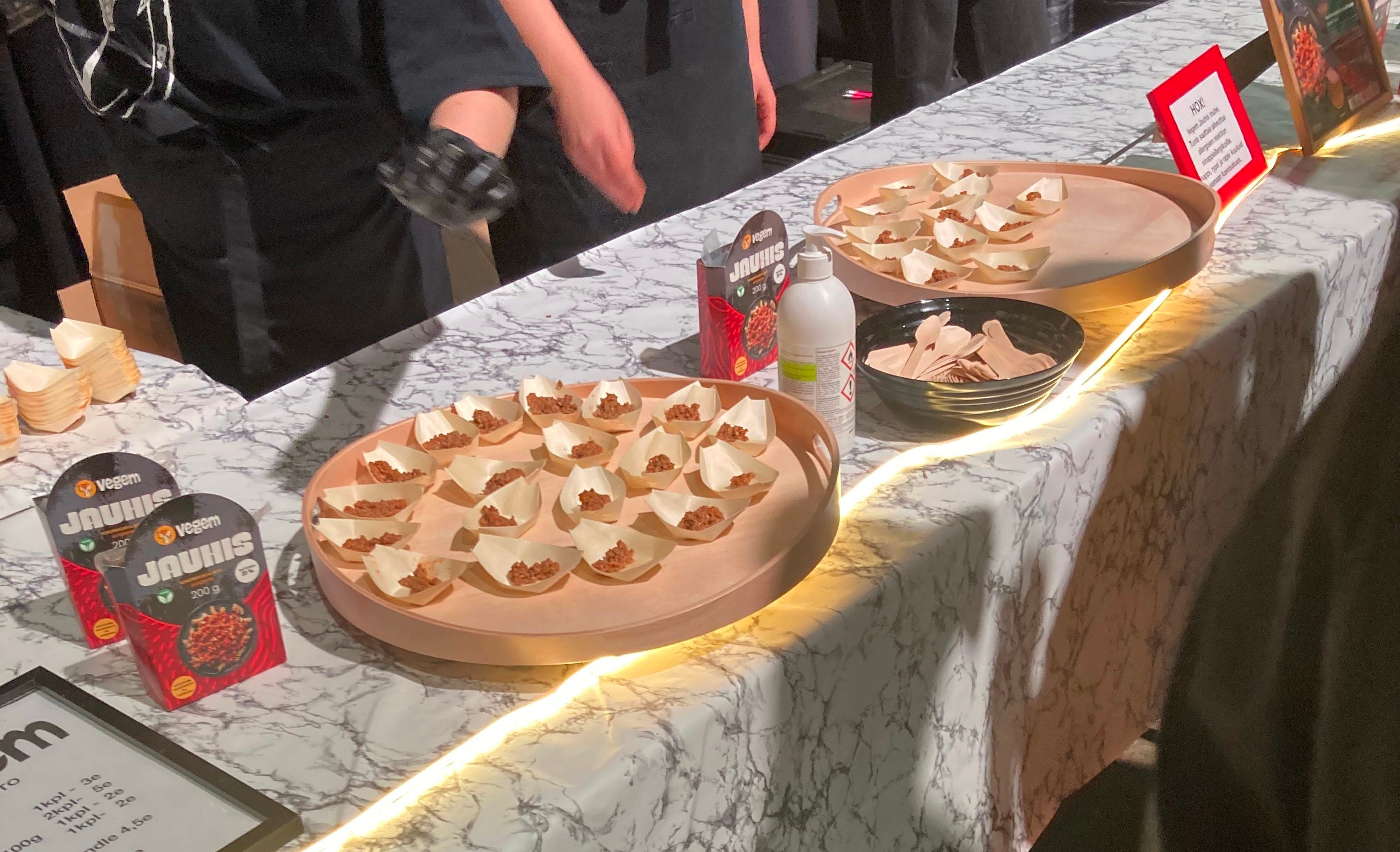 Vegem was sampling a vegan jauhis (minced meat). The sample itself was okay, but it lacked seasoning. The only flavor came from the Dolmio pasta sauce it was mixed with, which didn’t really add much.